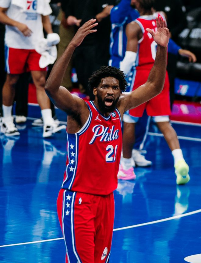 险造24分大逆转,恩比德沮丧离场!4胜0负不败金身被破,布朗31分